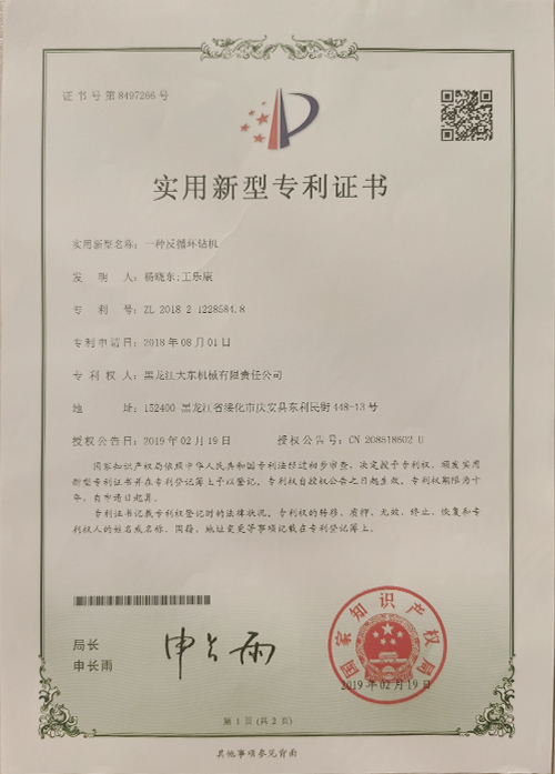 一種反循環鉆機專利證書